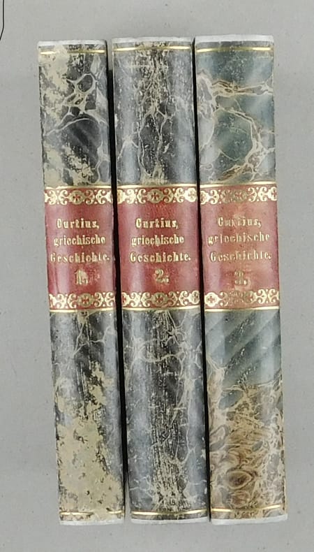 Band 1 in zweiter Ausgabe. Band 2 und 3 in erster Ausgabe. Vorsätze leicht stockfleckig sonst fleckenlos. Einbände beschabt in hübschen Kleisterpapierbezügen.