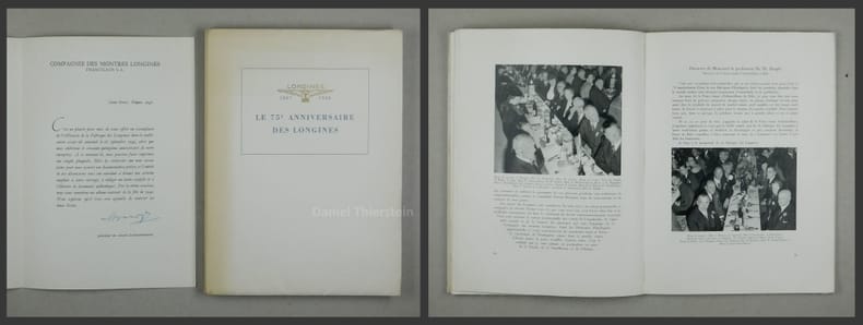 Saint-Imier, Longines 1946, 280x200mm, 115pages, demi-chagrin vert à coins, pièces de titre en cuir rouge, plats papier marbré, couverture conservée. Exemplaire numéroté 1504/2000. Bas du dos taché, autrement bon état.
