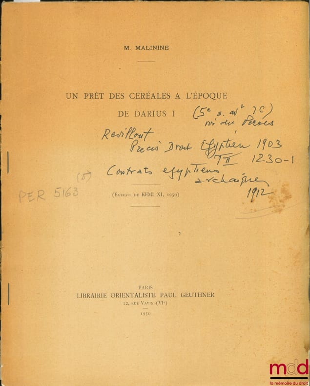 , Paris, Paul Geuthner 1950, in-4, br., (annotations et soulignures au crayon), 23p.