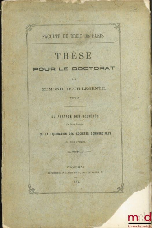 , Cambrai, Carion et Cie 1882, in-8, br. (fragile, mq. de papier au dos de la couv.).