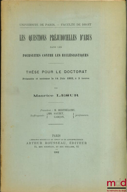 , Paris, Arthur Rousseau 1902, in-8, br..