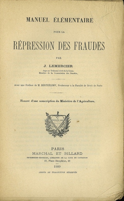 , Paris, Marchal et Billard 1909, in-8, débr. (jauni), XIII-600p.