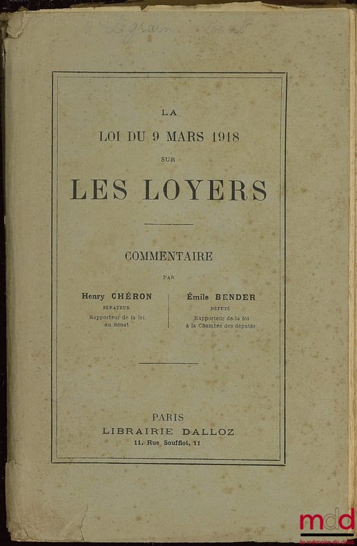 , Paris, Dalloz circa 1919, in-8, débr., on y joint de nombreux extraits de journaux et notes manuscrites relatifs à cette loi., 341p.