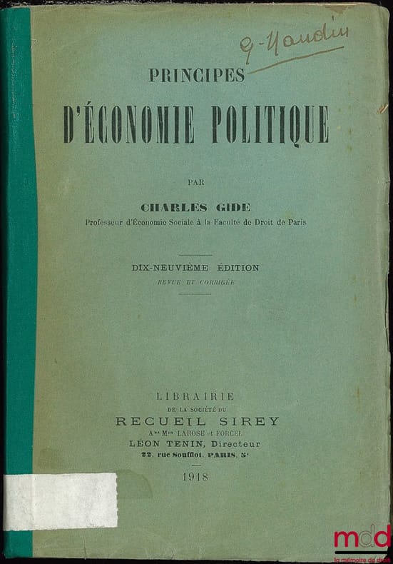 , Paris, Sirey 1918, in-8, br., (jauni, dos renforcé par un ruban adhésif vert, marques de bibliothèque), VII-682p.