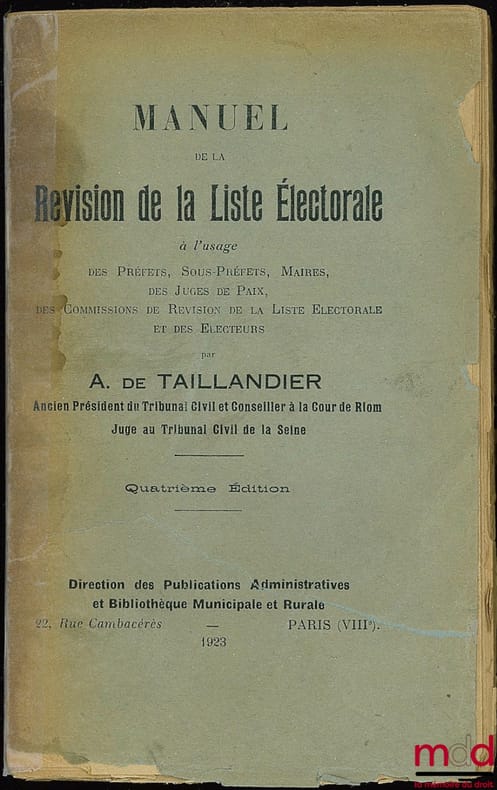 , Paris, Publ. administratives 1923, in-8, br., non coupé, (fané, couv. tachée, jauni, marques de bibliothèque), 484p.