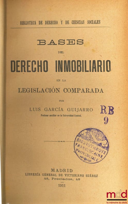 , Madrid, Libreria general de Victoriano Suarez 1911, in-8, demi-veau havane, dos à nerfs, tit. dorés, (jauni, marques de bibliothèque), ENVOI DE L’AUTEUR, 307p.