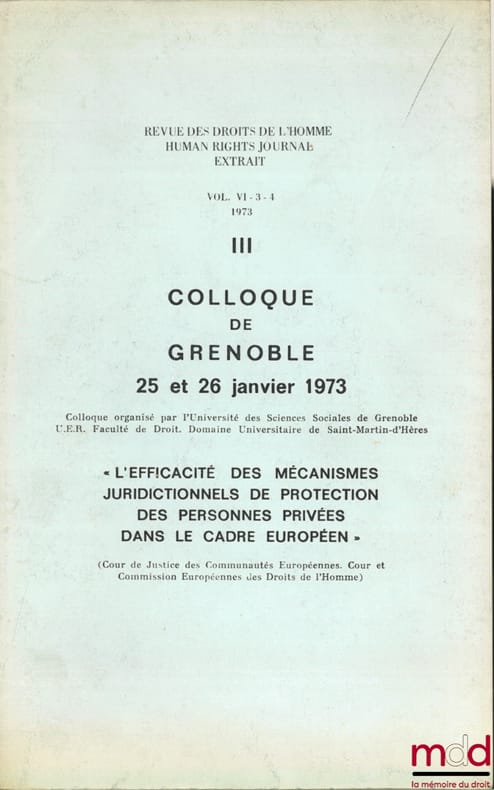 , Grenoble, Cour de justice de la CEE… 1973, in-8, br., bon état, 200p.