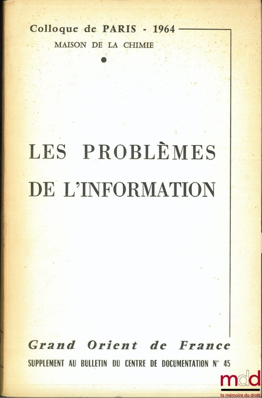 , Paris, Grand Orient de France 1964, in-8, br., bon état, 356p.