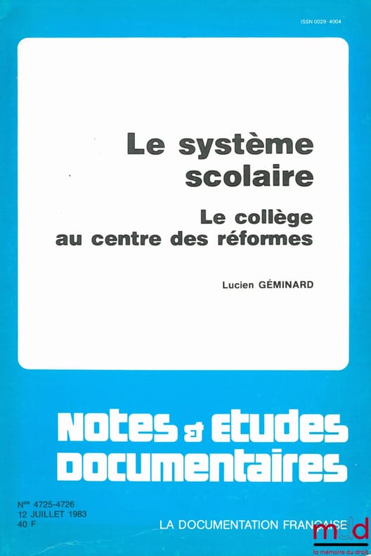, Paris, La Documentation Française 1983, in-8, br., bon état, 144p.