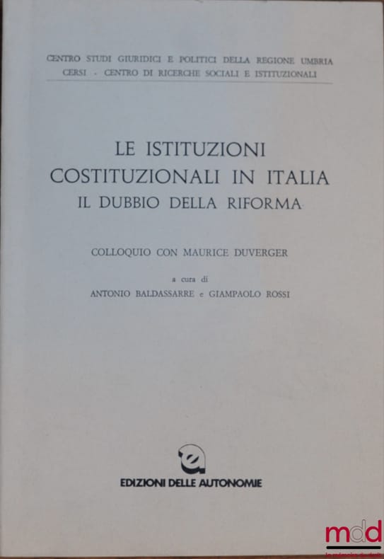 , Perugia, Edizioni delle Autonomie 1986, in-8, br., bon état, 124p.