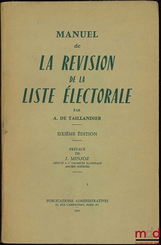 , Paris, Publ. administratives 1955, in-8, br., (jauni, 1re de couv. détachée), int. frais, VIII-376p.