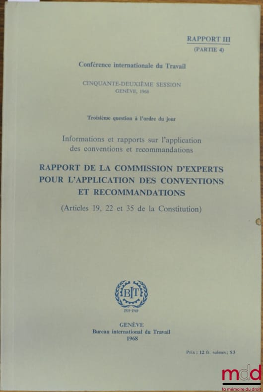 , Genève, Bureau international du Travail de Genève 1968, in-8, br., bon état, 263p.