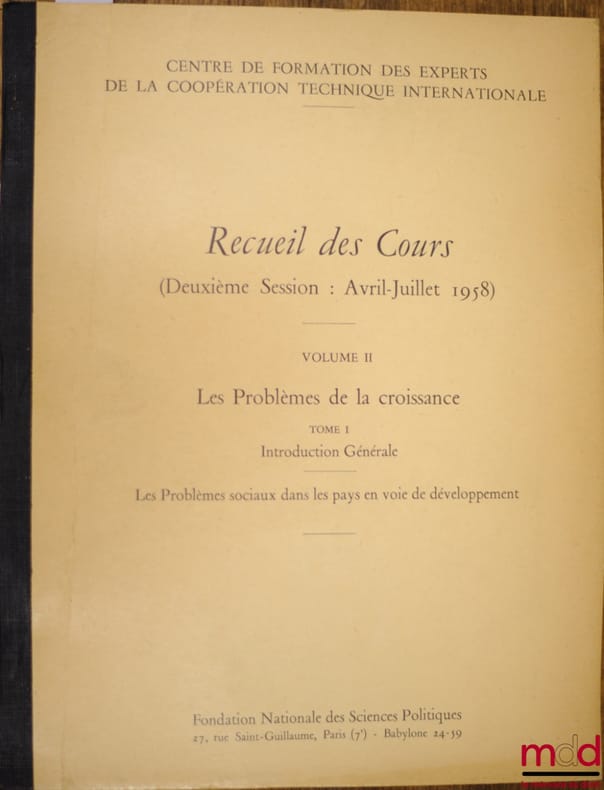 , Paris, Fondation nationale des sciences politiques 1958, in-4, multicopié, bon état, 204p.