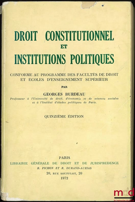 , Paris, L.G.D.J. 1972, in-8, br., (couv. lég. fanée, ptt. déchirures au dos, une vingtaine de p. cornées), intérieur très frais, 640p.