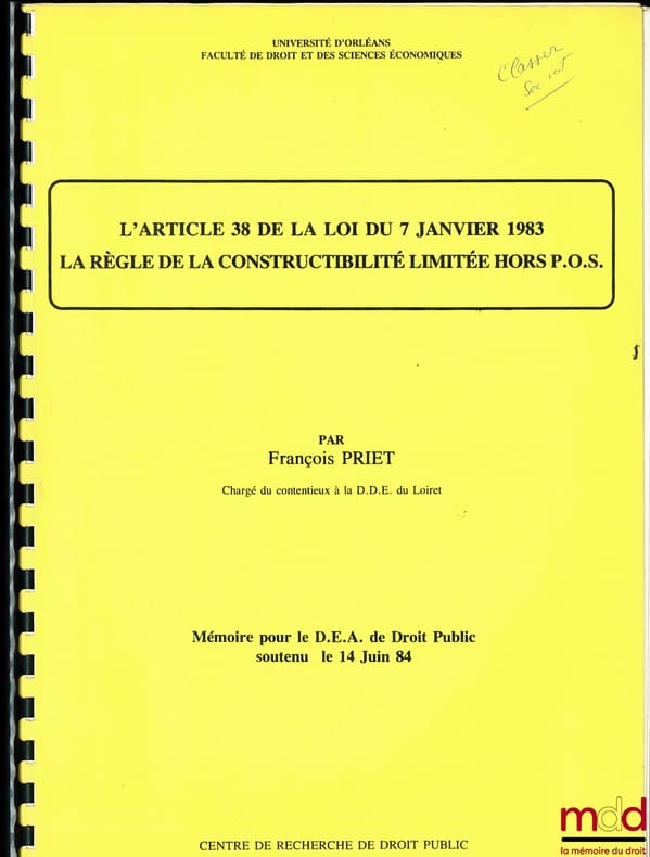 , Orléans, Centre de recherche 1984, A4, mémoire dactylographié, br. à spirales, (couv. fanée), [3 ff] -120p. -[8 ff] .