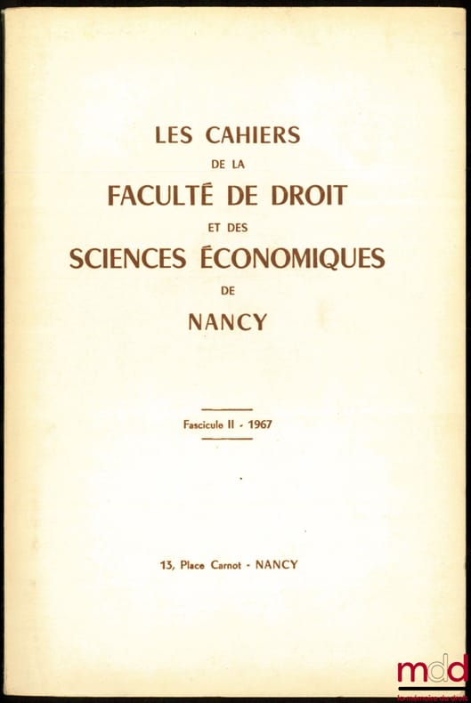 , Nancy, Imp. Georges Thomas 1967, in-8, br., (dos lég. insolé), intérieur frais, 224p.