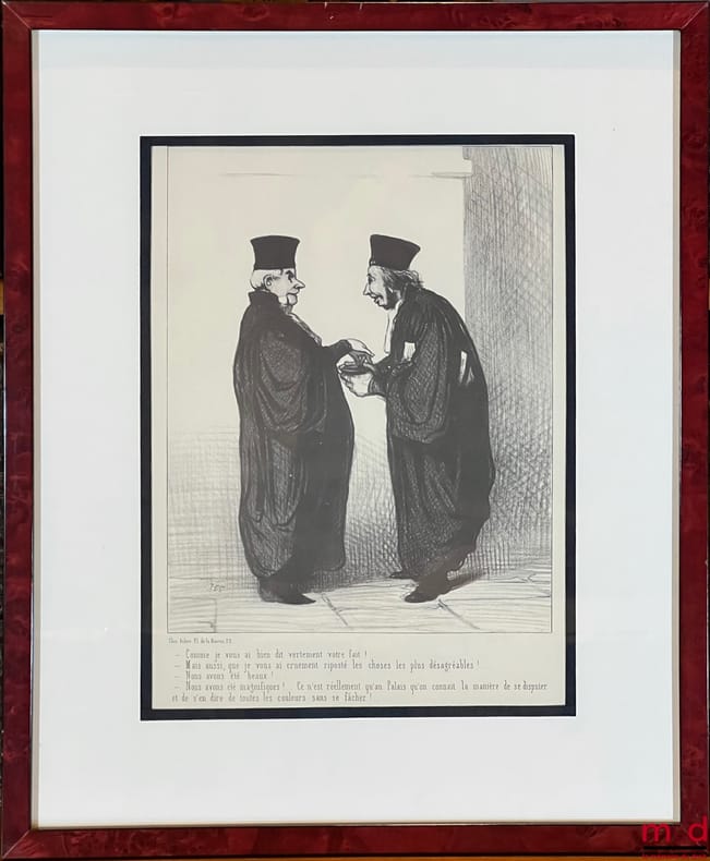 [1845], tirage non-numéroté, 28 x 21cm [litho.], 44 x 36cm [cadre] à la française, litho début XXe monochrome signée, fine baguette de loupe de bois verni bordeaux, (quelques légères traces et petit coups) bon état.