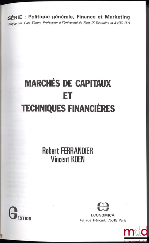 , Paris, Economica 1988, in-8, rel. pleine toile ocre, tit. doré sur dos lisse orné de doubles filets dorés, (couv. passée, coins lég. émoussés, rares taches n’affectant pas la lisibilité du texte), intérieur très frais, VIII-376p.