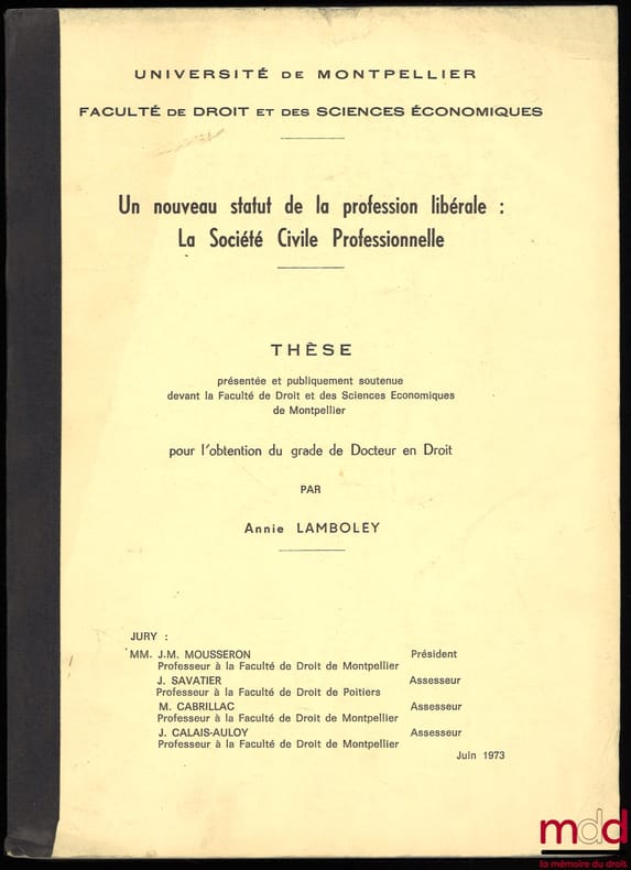 , Montpellier 1973, A4, thèse dactylographiée et thermoreliée, (couv. fanée, dos lég. taché), intérieur frais, V-[1ff.]-344-[1ff.]-XLVIIp.