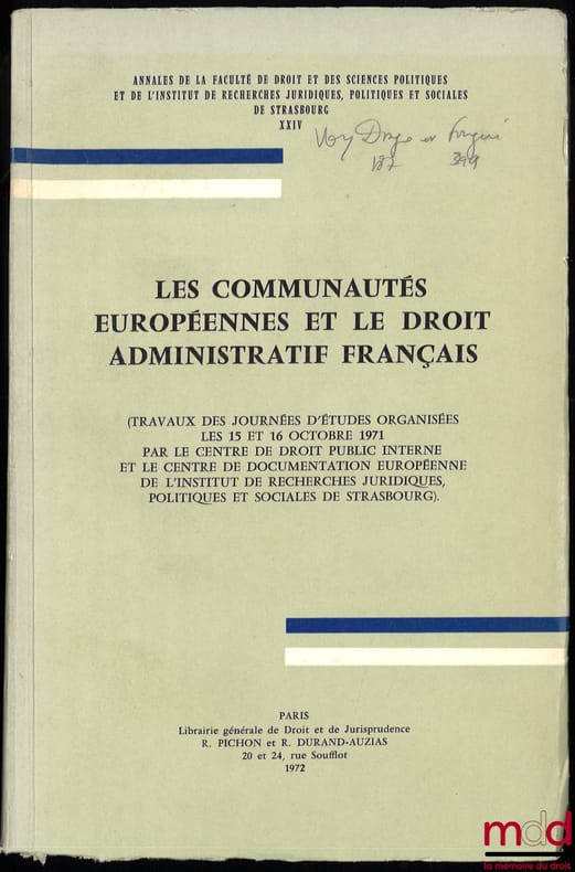 , Paris, L.G.D.J. 1972, in-8, br., en partie non coupé, (couv. lég. fanée, qq. soulignures et annotations), bon état malgré les défauts soulignés, 502p.