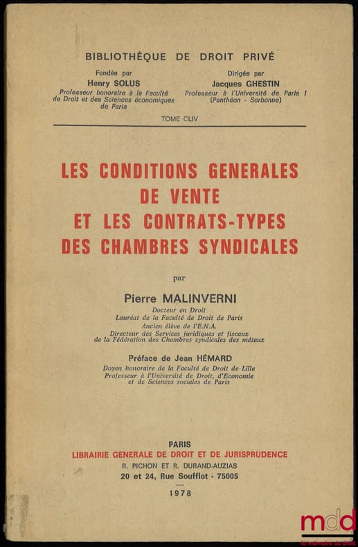 , Paris, L.G.D.J. 1978, in-8, br., (couv. lég. fanée, marque de bibl.), intérieur très frais, XXIV-382p.