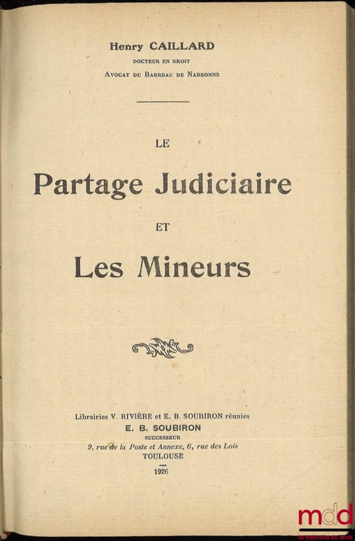Livre. Editions E. B. Soubiron, 1926.