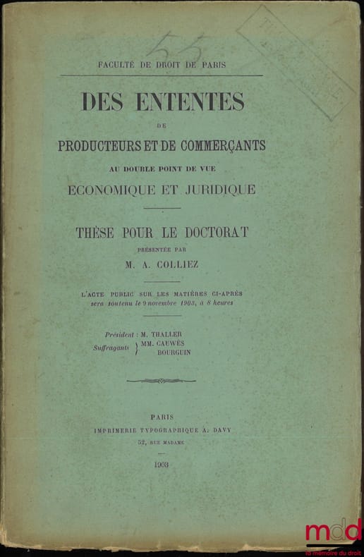 , Paris, A.Davy 1903, in-8, br., non coupé, (lég. marque de bibl., couv. fanée et insolée, piqûres en couv.), int. très frais, 605p.