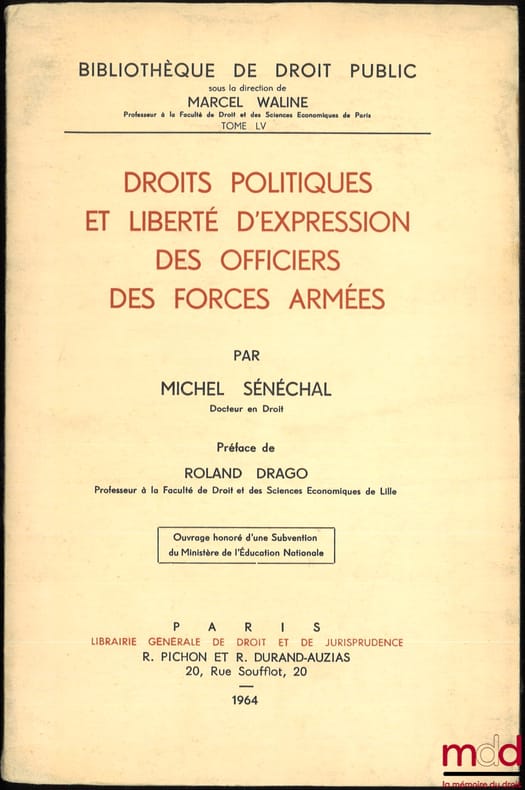 , Paris, L.G.D.J. 1964, in-8, br., non coupé, ENVOI DE L’AUTEUR AU PROFESSEUR FRANÇOIS LEROY, (couv. légt salie), III-321p.
