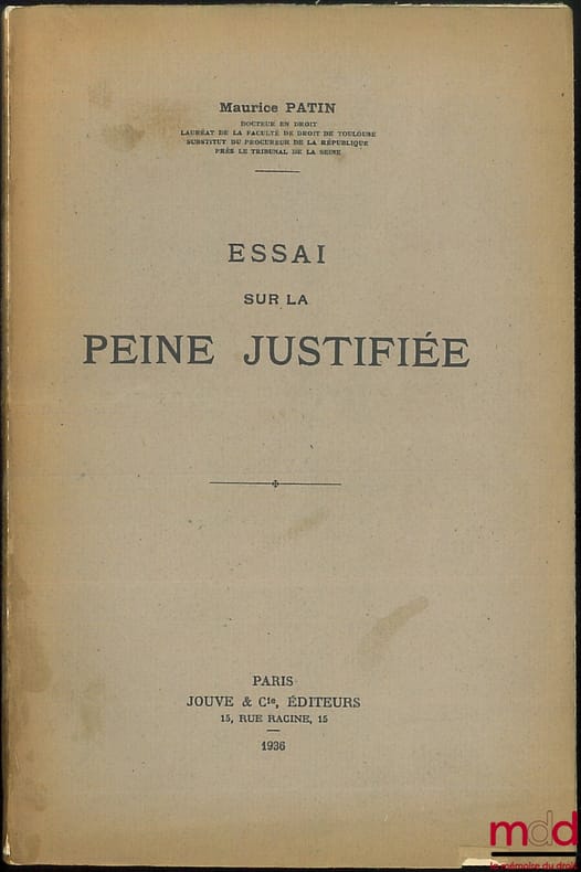 , Paris, Jouve & Cie 1936, in-8, br., non coupé, (lég. fané), ENVOI DE L’AUTEUR À M.NECTOUX, 136p.
