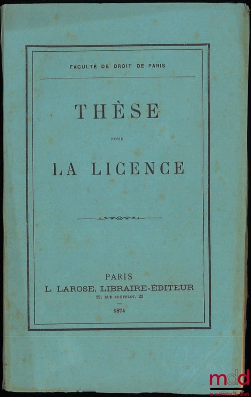 , Paris, Larose 1874, in-8, br., non massicoté, (couv. fanée, qq. rousseurs en début d’ouvrage), 116p.