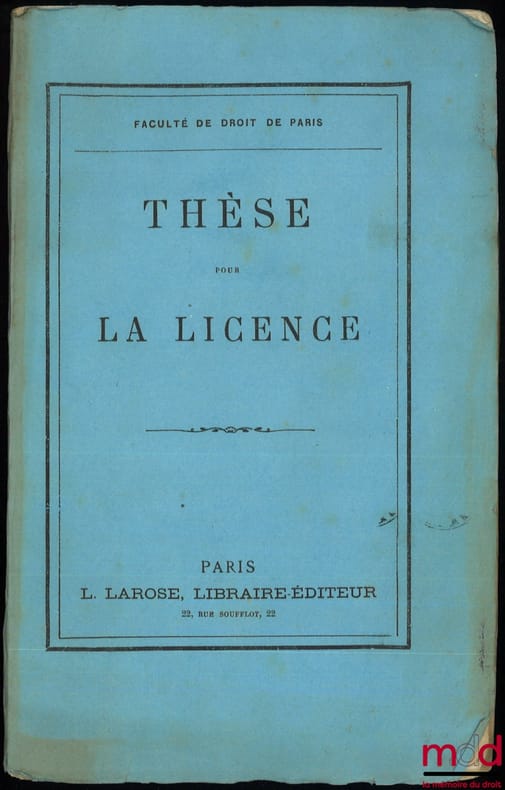 , Paris, Larose 1874, in-8, br., non massicoté, (couv. fanée, qq. rousseurs en début d’ouvrage), 116p.