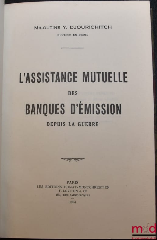 , Paris, Domat - Montchrestien 1934, in-8, demi-chagrin noir, tit. doré sur dos à cinq nerfs orné de filets à froid, tranches mouchetées, (rel. légt frottée avec rares épidermures au 1e plat), int. très frais, bon état hormis défaut mentionné, X-305p.