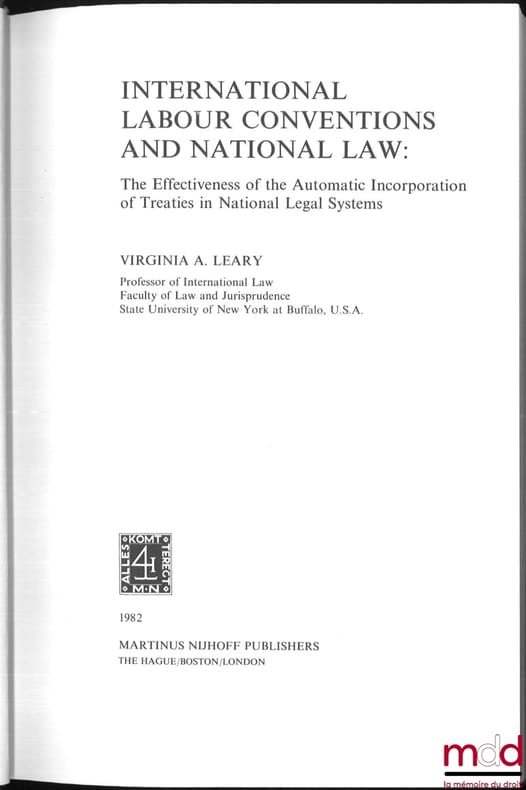 , The Hague [La Hague]/ Boston/ London [Londres], Martinus Nijhoff Publishers 1982, in-8, rel. éd. toile enduite noire, tit. sur dos lisse, ENVOI DE L’AUTEUR à «Nicolas Valticos», (rel. légt frottée, not. les coiffes inf. et sup.), int très frais, XIV-191p.
