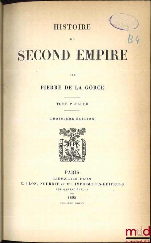 , Paris, E. Plon, Nourrit et Cie 1895/ 1895/ 1896/ 1899/ 1901/ 1903/ 1905, 7 vol. in-8, demi-chagrin noir, tit. et tom. dorés sur dos à cinq nerfs ornés de filets dorés, nb. cartes dépliantes, (très rares épidermures not. sur les t.I et III, coiffes très légt frottées, marques de bibl. à l’int.), int. très frais, très bon état général, VII-493/ 458/ 485/ 642/ 538/ 466/ 444p.