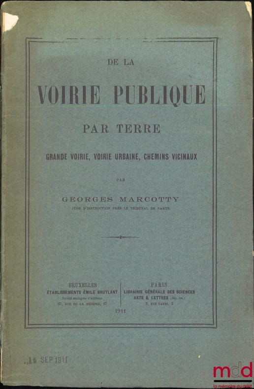 , Bruxelles-Paris, Émile Bruylant- Librairie générale des Sciences Arts& Lettres 1911, in-8, débroché, partielt non coupé, int. frais, 493p.