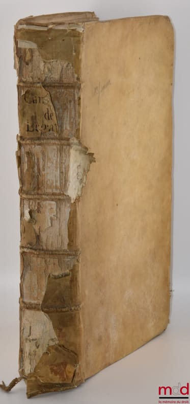 , Venetiis [Venise], Abundium Menafolium 1681, in-folio, plein vélin ivoire, tit. manuscrit sur dos à cinq nerfs, lettrines ornées, bandeaux et vignettes, imp. en double colonne, (rel. très usée avec d’importants mq. au dos, coupes latérales et coins frottés, charnière inf. fragile, qq. tâches à l’int, papier parfois très acidifié, des trous de vers traversants sans incidence sur la lecture), [40]-828-[Index] p.