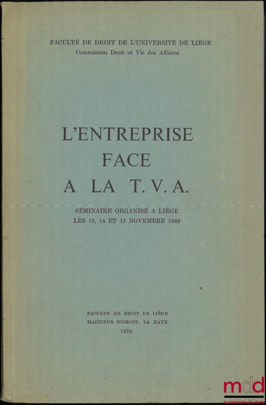, La Haye, Faculté de droit de Liège & Martinus Nijhoff 1970, in-8, br., (couv. et dos insolés), 269p.