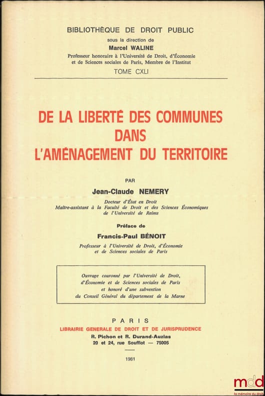 , Paris, L.G.D.J. 1981, in-8, br., (dos légt insolé), bon état, [ce livre provient de la bibliothèque personnelle de Marcel et Jean Waline], 384p.