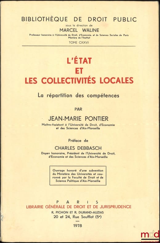 , Paris, L.G.D.J. 1978, in-8, br., bon état, [ce livre provient de la bibliothèque personnelle de Marcel et Jean Waline], 630p.