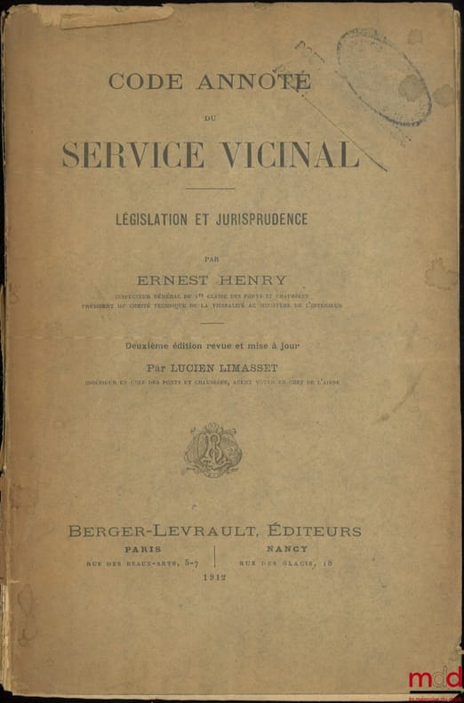 , Paris, Berger-Levrault 1912, in-8, br., non coupé, (ouvrage fané, mq. 4ede couv., 1rede couv. détachée), X-1265p.