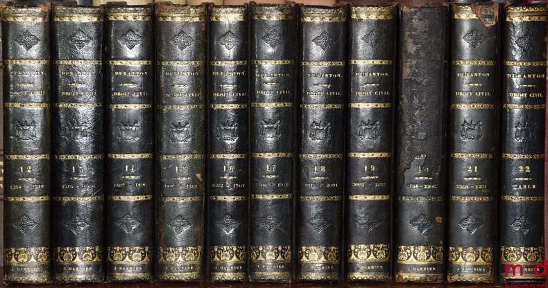 , Paris, Alex Gobelet 1834-1842, 22 vol. in-8, demi-basane ébène, tit. & tom. dorés sur dos lisses ornés de frises et dentelles dorées et de fleurons estampés à froid, tr. jaspés, portrait de l’auteur gravé en frontispice, rel. au chiffre «J. Garnier», (rel. lég. usées, coupes frottées et coins émoussés, t.11: dos partielt décollé sur sa partie inf., qq. rousseurs et piqûres dans certains vol., papier parfois acidifié, t.20: dos frotté avec effacement des dorures, t.21: un impact sur la coiffe sup. avec mq. de cuir), int. frais.