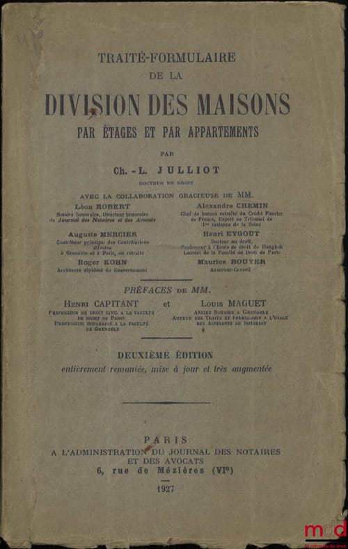 , Paris, Journal des Notaires et des Avocats 1927, in-8, br., non massicoté, (fané), int. frais, XIX-643p.