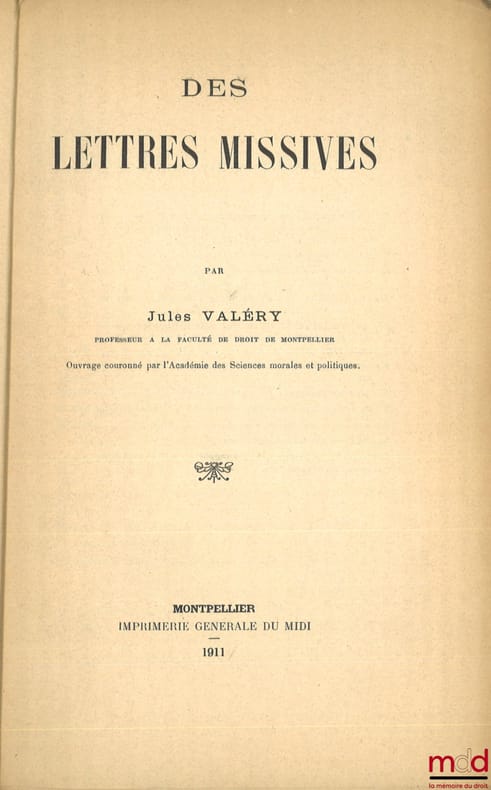 , Montpellier, Imp. générale du midi 1911, in-8, br., non coupé, ENVOI AU PROFESSEUR DEMOGUE, (couv. muette), 420p.