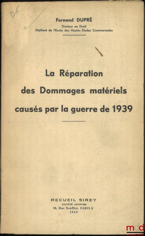 , Paris, Sirey 1943, in-8, br., non coupé, int. frais, 154p.