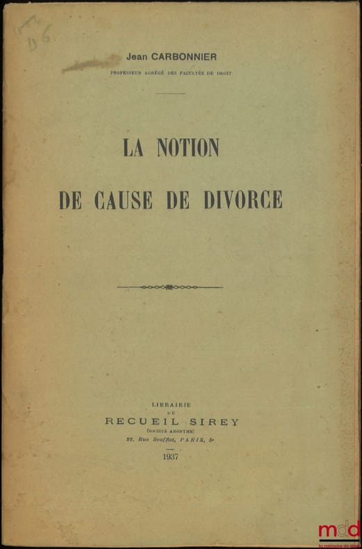 , Paris, Sirey 1937, in-8, fascicule agrafé, ENVOI DE L’AUTEUR À LEBRUN, (dos insolé, une annotation à l’encre), int. frais, 33p.