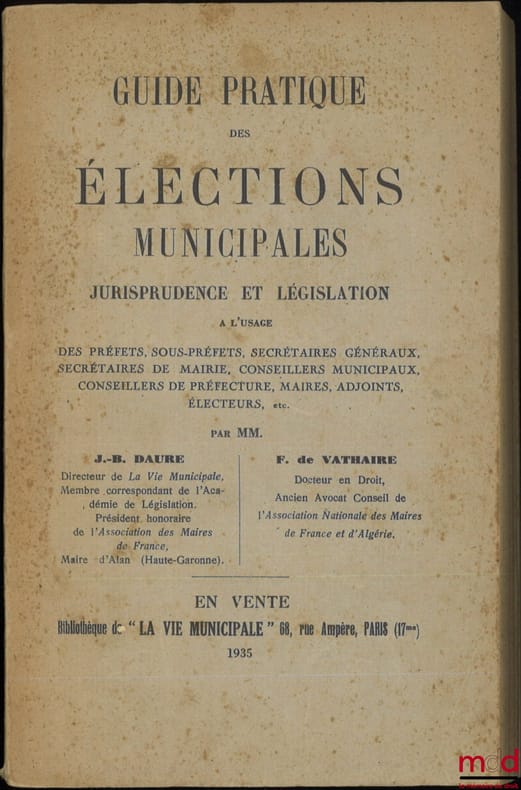 , Paris, La Vie municipale 1935, in-8, br., (couv. passée), int. frais, 346p.