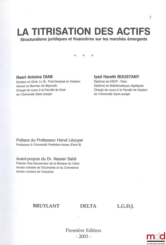 , Bruxelles- Liban- France, Bruylant - Delta - L.G.D.J. 2003, in-8, rel. éd., bon état, 506p.