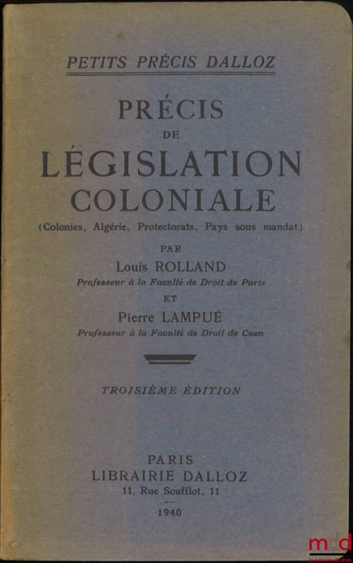 , Paris, Dalloz 1940, in-8, br., (dos insolé), bon état, [3ff.]-574-27p.