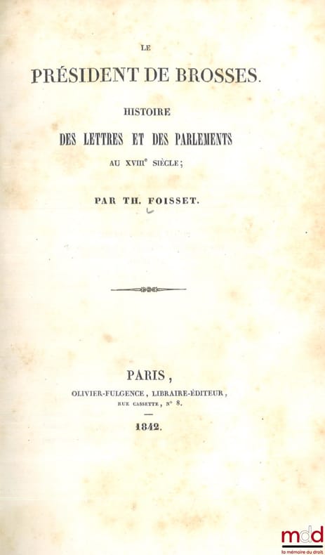 , Paris, Olivier-Fulgence 1842, in-8, demi-basane brune, tit. doré sur dos lisse orné de double filets soulignants dorés, tr. mouchetées, (coiffes arrachées, qq. épidermures, qq. rousseurs), assez bon état, 594p.