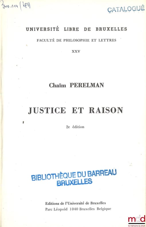 , Bruxelles, Éd. de l’Université de Bruxelles 1970, in-8, pl. rel. en percaline grenat, tit. doré sur dos lisse, rel. au chiffre de la Bibliothèque des Avocats, couv. cons., (rares soulignures au crayon, marques de bibl.), bon état, 255p.